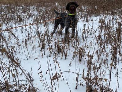 She has been on many preserve hunts and has been to South Dakota twice where she has done exceptionally well on wild pheasants. She is primarily hunted on grouse and woodcock in Northern Michigan. She also pulls double duty and has no problem sitting in a duck blind retrieving ducks and geese.